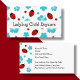 Modelo de cartão de negócios da guarda no design brilhante e do divertimento que inclui joaninhas bonitos, flores, e flores do hibiscus na turquesa, no vermelho, e no wbite. Destaca seu nome da empresa na parte dianteira e indica seus detalhes da guarda no outro lado. Projetado como um design da guarda ou babysitting.