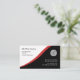 O modelo de cartão de negócios moderno do escritório em um design lustroso em preto e branco vermelho modelos que do texto você pode personalizar em linha para serir seu negócio.