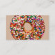 Cartões de visitas da loja de filhós que incluem uma imagem gráfica de uma rosquinha em ambos os lados do cartão e do texto que você pode facilmente personalizar para serir suas necessidades do negócio. Projetado como um modelo de cartão de negócios para uma padaria, uma loja de filhós, ou uma loja dos confeitos. Impresso no estoque de alta qualidade do cartão do canto arredondado.