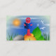 Bookworm © Sunny Mars Designs. Estes livros armazenam cartões de visitas com ilustração de um verme rosa giro lendo um livro enquanto se sentava sobre um damasco com folhas de seixos e grama ao seu redor.
