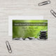 Cartões de visitas reconfortantes da massagem em um design legal que inclua uma foto do zen balance e nas folhas junto com a informação que básica você pode personalizar para seu serviço do masseuse.