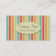 Estes cartões de visitas coloridos foram feitos com um cozinheiro chefe da padaria ou de pastelaria na mente! Caracterizaram um fundo textured das listras do rosa, do creme, do azul, as alaranjadas & as verdes. Um círculo de creme contem a sala para seu nome da empresa & um tagline (ou seu Web site). A parte traseira contem a sala para seus detalhes do nome, da posição e do contato.