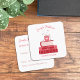 Cartões de contato brancos, bonitos e quadrados, com cantos arredondados para educadores, com uma pilha de livros vermelhos e uma xícara vermelha de café a vapor no topo. Personalize-os com suas próprias informações usando o modelo fornecido. Este design também está disponível em um formato padrão de cartão de visita. © ArianeC Ilustrações — Todos os direitos reservados