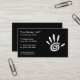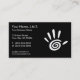 Este cartão de visita da terapia da massagem caracteriza o texto branco e o logotipo espiral branco da mão à direita do texto no fundo preto. Para mover-se/resize o logotipo, ou adicione-o/remova-o os campos do texto, ou mude-os a uma outra cor clara do fundo, clicam sobre "personalizam-na." Sinta livre contactar-me com todas as perguntas.