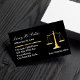 Cartões de visitas legais e elegantes que você pode personalizar com design simples, mas poderoso, que inclui uma escala de justiça, layout de texto fácil e cores de fundo que você pode personalizar, e fonte de texto do nome do script do rico que você também pode alterar. Projetado para um escritório de advocacia, advogado, advogado ou advogado, se você é da Inglaterra.