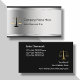 cartões de visitas de advogados que você pode personalizar com design de classe que inclui um fundo metálico simulado em prata impresso digitalmente na frente, layout de texto que você pode personalizar, uma escala de lei e um design inteligente de dois lados que inclui impressão de dois lados. Projetado para temas relacionados a advogados, advocacia, advogado ou secretário legal e apresentado em nosso modelo de cartão de negócios de canto arredondado.