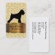 Cartões de visitas clássicos e exclusivos de aliciamento de animais de estimação em poderoso design vertical que incluem um emblema dourado com nome impresso, ossos de cães e um Schnauzer de pé. Organize suas informações de contato e da empresa no segundo lado, com a impressão lateral incluída. Melhores cartões de visitas para temas relacionados ao aliciamento de cães, ao aliciamento de animais de estimação ou a um salão de animais de estimação apresentado no nosso estoque de cartão de visita de canto arredondado de alta qualidade.