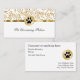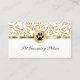 Cartões de visitas elegantes e elegantes de aliciamento de animais de estimação com sotaques dourados simulados, cor damasco dourada e branca, e símbolo de impressão de pata de animais de estimação com belo texto no roteiro de rico na frente com todas as informações de contato pertinentes na parte de trás que você pode personalizar de acordo com o seu gosto. Projetado para um martelo de animais de estimação, salão de animais de estimação ou serviço de cuidados para animais de estimação.