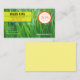 Este cartão de visita de jardim é totalmente personalizável e é excelente para qualquer negócio de paisagismo. Diferencie seus cartões de visitas dos outros, incluindo esse desconto para novos clientes em uma cor laranja brilhante. O laranja está muitas vezes associado à felicidade e ao otimismo e é atraente para os olhos. Você pode personalizar ainda mais este cartão, listando seus serviços de assistência à grama, como cortar, borrar, fertilizar e controlar ervas daninhas. Inclua seu nome ou nome de sua empresa, seu título, número de telefone e endereço de email (opcional). A parte traseira do cartão é uma cor amarela alegre, que é atraente para os olhos, mas também leve o suficiente para que você escreva informações adicionais para o seu cliente.