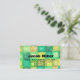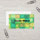 Um cartão de contato que é definitivamente um sobressalto! Azulejos de cor aquosa em verduras e turquesas com texto a negrito.
