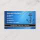 Cartões de visitas de barco de pesca com ancoragem de navios, fundo no estilo da água azul e espaço de texto que você pode personalizar. Design simples que funciona para um barco fretado de pesca, marina ou conserto de barco.