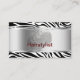 Cartões de visitas de cabeleireiro de beleza moderna com fundo metálico prateado simulado, um padrão de stripes de zebra e um layout de texto de excelente que você pode personalizar em dois lados. Design de estilo modelo fácil que você pode alterar ao seu gosto. Melhores cartões de visitas para salões de beleza, cabeleireiros, cabeleireiros ou cortadores de cabelo independentes.
