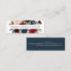 Os cartões de visitas florais quicos de mini tamanho que guardam papel apresentam o seu nome ou nome de empresa flanqueado por uma borda superior e inferior de flores pintadas a aquarelas em tons de joia de burgundy marsala, azul marinho e rosa esbranquiçado, com folhagem botânica verde de eucalipto. Adicione as informações de contato do seu cheio ao fundo em branco em azul-preto rico.