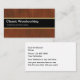 Cartões de visitas modernos de carpinteiro ou de madeira com fundo de madeira simulado e um layout de texto fácil de personalizar. Melhores cartões de visitas para temas relacionados a carpintaria, madeira, marcenaria, cozinha e banho.