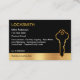 Cartões de visitas Classy Locksmith projetados com um símbolo de chave de casa de tom dourado e layout editável. Apresentado em um estoque maior de cartão de visita.