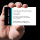 Cartões de visitas modernos de faturamento e codificação médica em um design mínimo que inclui um fundo preto, branco e azul, um layout simples de texto organizado que você pode personalizar e projetado para um negócio que ajuda consultórios médicos e hospitais a gerenciar suas contas a receber e faturar.