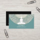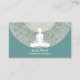 Cartões de visitas de atenção elegantes com gráfico floral floreado e símbolo de uma pessoa fazendo meditação e layout de texto que você pode personalizar neste design lateral. Cartão de visita perfeito para temas relacionados com atenção, malhação física e meditação.