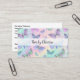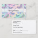 Cartões de visitas de lembrete de compromisso para uma Hairstylist projetada com um padrão de borboleta colorido em um gráfico de fundo de vidro com seu nome exibido na frente e seu modelo de compromisso no lado do sacudir uso de ambos os lados para que você não precise ter cartões de visitas e cartões de compromisso separados.