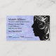 Modelo de cartão de negócios de beleza único em um elegante design, incluindo um gráfico de modelo de cabelo de moda com design floral em segundo plano com layout de texto, você pode facilmente personalizar on-line para um cabeleireiro, manicurista ou um negócio de beleza e moda.