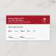 Cartões de visitas de lembrete de compromisso do Doutor em Orçamento em um modelo editável com cor vermelha de fundo e logotipo de dente que você pode usar em nossos cartões de compromisso disponíveis em massa.