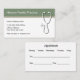 Cartões de visitas médicos modernos com um aviso de modelo para um médico de família em layout clássico com gráfico legal de estetoscópio em segundo plano. Faça com que esta seja a combinação personalizada de cartão de visita e compromisso que você pode distribuir aos pacientes no escritório.