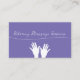 Modelo de cartão de visita de massagem com licença de tendências, design, editável, criado com texto elegante e mãos de massagem gráficas na frente, modelo de compromisso e detalhes de contato organizados no lado do sacudir, usando ambos os lados de seus cartões de visitas. Inclui impressão lateral em cor de cheio para uma massagem Terapista, Terapia ou massagem médica.