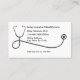 Médico ou Temático Médico Admissão de cartão de visita de aviso de paciente projetado com um gráfico legal de estetoscópio representando o tratamento de saúde em um simples modelo de edição para um escritório com a modelo de compromisso no lado do sacudir.
