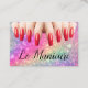 Uau, seus clientes com esses cartão de visita design com modelo fazer com unhas brilhantes, tecnologia de unhas e temas de manicura, criados com unhas vermelhas brilhantes e um histórico holográfico de tendências, juntamente com um modelo de lembrete de compromisso no lado do sacudir, uso de ambos os lados.