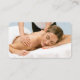 Lembrete moderno de massagem Terapista moderno e combinação de modelo design de cartões de visitas de em um design on-line editável que você pode personalizar em tempo real. Projetado com impressão em ambos os lados mostrando seus detalhes de compromisso e contato na frente e uma imagem de um cliente relaxando em uma massagem suave no verso. Inclui a impressão a cores de dois cheios laterais e é apresentada no estilo cartão de visita de canto arredondado.