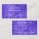 Bonita mão pintou cartões de visitas de compromisso de aquarela azul violeta, com um design contemporâneo. Design profissional perfeito para artistas de maquiagem, estilistas de cabelo, artistas de pregos, extensões de pestanas, salões de beleza, bares de lash e muito mais! Personalize seu nome e título na frente do cartão. Personalizou seus detalhes no verso.