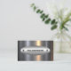 Os cartões de visitas mais incríveis do tema da construção projetados com uma arte de fundo digital metálica prateada e um emblema de negócio de tom prateado com prendedores realistas que fazem com que esse emblema pareça estar preso à frente. Funciona como modelo editável para um serviço de construção, remodelação, reciclagem, construtor ou fabricação de metal.