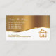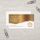 Cartões de visitas clássicos de corretor imobiliário com elementos de design metálicos em ouro simulados e símbolo de casa em ouro, todos impressos digitalmente na frente. Personalize o texto, a cor ou o layout de fundo branco, conforme desejar. Concebido como modelo de cartão de negócios para um corretor imobiliário, corretor imobiliário ou agência.