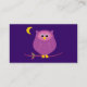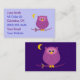 Estas bonitinhas cartões de visitas roxas apresentam uma ilustração com uma bela coruja de desenho animado em um galho sob uma lua crescente! Estes cartões de visitas são uma maneira criativa de impressionar e são excelentes de usar como cartões de contato pessoais! Preencha o seu próprio nome, endereço, correio eletrônico, número de telefone e Web site ou quaisquer outras informações de que necessite para preencher facilmente o modelo personalizável!