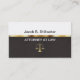 Os cartões de visitas de couro do advogado do estilo com design bilateral poderoso mas simples que inclui um couro preto simulado como o fundo impresso na parte dianteira e na parte traseira, uma escala colorida do ouro da escala da lei de justiça, e ouro elegante coloriram a linha do divisor que olha metálica. Personalize facilmente o texto e a disposição para serir seu prática de direito, escritórios de advogados, advogado ou advogado da defesa legal.