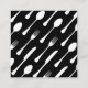 cartões de visitas de cozinha quadrados, profissionais ou de cozinha, com um padrão de talheres brancos em fundo preto. Campos de modelo personalizáveis para nome, título/nome/especialidade da empresa e informações de contato no verso.