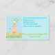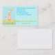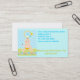 Cartão de visita de creche, com a imagem de um bebê segurando uma garrafa num fundo de bolinhas azul. Tem texto dizendo, onde o mais pequeno aprende muito. Há um círculo para o seu logotipo e, do outro lado, há espaço para todas as suas informações comerciais. Tudo pode ser personalizado para a sua empresa.