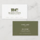 Cartão de visita de paisagismo de gramíneas minimalista personalizado — apresentando um simples, moderno, masculino, verde-musgo e branco minimalista, com personalização tanto na frente como no verso, com um monograma coberto de grama.