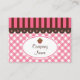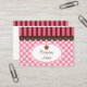 Listras coloridas cor-de-rosa e castanho, gingham, pontos de chocolate e vieiras dão a este cupcake-retrô. Use este cartão de visita para uma padaria, butique, compro, restauração, etc... Personalize as informações para atender às suas necessidades, adicione ou exclua texto, etc. Os designs são da arte original.