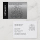 Detalhando automaticamente cartões de visitas com um design moderno que inclui uma imagem retro gráfica de um detalhador automático em segundo plano, simulação de fundo de metal brilhante prateado digitalmente impresso na parte frontal para se parecer com metal real, e layout de texto personalizado para atender às suas necessidades em ambos os lados neste design de dois lados. Projetado como um modelo de cartão de negócios para um serviço de detalhamento automático, lavagem manual de carros ou detalhe profissional.