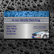 Auto detalhando cartões de visitas com gotas de água design e acabamento metálico prateado simulado impresso na frente com texto facilmente personalizado e imagem de um carro esportivo. Melhores cartões de visitas para um serviço móvel detalhado de negócios, lavagem de carros ou limpeza.