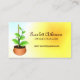 © Sunny Mars Designs. Vinha em crescimento em Cartões de visitas de viveiros Bamboo Stick - Este modelo de cartão de negócios de viveiros apresenta uma vinha que cresce contra uma vara de bambu castanha contra fundo amarelo. A parte traseira da placa apresenta a mesma planta crescendo em um bastão de bambu em um pote de terracota.