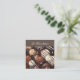 Cartões de visitas temáticos do Chocolatier projetados com um gráfico de uma montagem de chocolates em segundo plano com este design lateral que apresenta um modelo que você pode editar para atender às necessidades de sua pequena empresa.