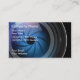 Cartão de visita de fotografia com imagem de arte de uma lente de câmera.Use este modelo de cartão de negócios de fotógrafo para um serviço de fotógrafo, videógrafo, planejador de eventos ou estúdio de fotos. Ou pode ser mais adequado para sua fotografia de retrato, fotografia de casamento ou escola de fotografia.