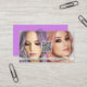 Cartão de visita de código QR de rede moderno com 2 fotos para maquiagem de artista, na moda de cabelo, lascas ou extensões unhas para pequenas empresas. Esta moderna cartão de visita de código de barras digitalizável do cosmetólogo chic é uma boa maneira de promover e envolver-se com o cliente, compartilhando mais informações sobre sua empresa usando o código QR, conectando-se às suas mídias sociais ou adicionando seu logotipo para fins de marca.
