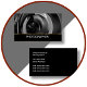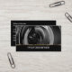 O design cartão de visita clássico e profissional legal, pronto para uso, é criado com um gráfico de lente de câmera no fundo e um design lateral que inclui a impressão de dois lados. Trabalha para um retrato, casamento, evento ou fotografia de ocasião especial pro.