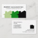 Modelo de cartão de negócios de gerenciamento de propriedades imobiliárias em um moderno e moderno design de dois lados que destaca o nome de sua empresa na frente com símbolos de casa em tons de verde. Concebidos para serviços de gestão de imóveis destinados a imóveis residenciais ou comerciais.