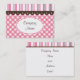 Listras cor-de-rosa e castanho, gingham cor-de-rosa, e vieiras dão este lindo estilo de retrô cartão de visita. Use este cartão de visita para uma padaria, butique, compro, restauração, etc... Personalize as informações para atender às suas necessidades, adicione ou exclua texto, etc. Os designs são da arte original.