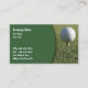 Excelente de golfe com foto de uma bola de golfe e tchau no campo de golfe e na área de texto que você pode personalizar. Melhores cartões de visitas para temas sobre golfe, lições de golfe ou indústria de golfe.