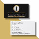 Modelo de cartão de negócios de tema de golfe de nível superior com um emblema de bola de golfe colorido de ouro e elementos de design de aparência dourada que apresentam seu nome ou nome de empresa na frente com muito espaço para informações sobre seu campo de golfe, lições de golfe ou vendas ou alugueres de equipamentos de golfe.