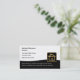 Cartões de visitas clássicos com emblema de símbolo de casa Realtor de tom dourado e layout editável clássico que você pode personalizar on-line criado para um profissional imobiliário no setor real.